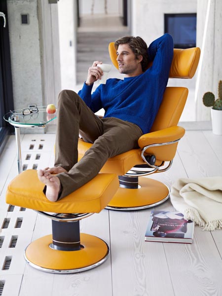 Каждый год Stressless «одевает» свои модели – диваны, кресла и пуфы – в новый «сигнальный цвет», который становится лицом бренда на весь сезон. Прошлогодний розовый на этот раз сменился ярким мандариновым Clementine. В этом оттенке можно заказать всю мебель Stressless: от модульных диванов и кресел-реклайнеров до мебели для домашнего офиса. Она впервые выпущена в этом году. Рабочие кресла Stressless Office – для любителей посидеть за компьютером.