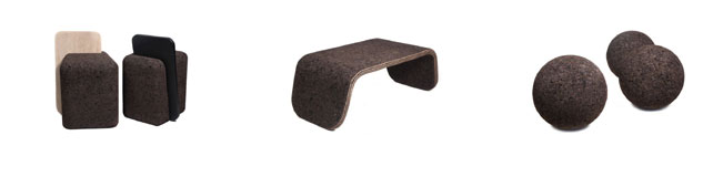 Коллекция мебели включает в себя кофейный столик, полку, а также различные виды стульев. Сосредоточившись на одном материале, дизайнер смог довести качество и внешний вид изделий из него до совершенства. По слова творца, его привлекла не только текстура пробки, но и ее свойства – способность поглощать звуки, термостойкость и другие.
