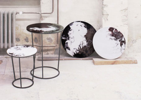 переходов и линий дизайнер крутила и переворачивала столешницы, раздувала эмаль воздухом. В результате мы видим на металле прекрасное застывшее движение, переливы и облака цвета.